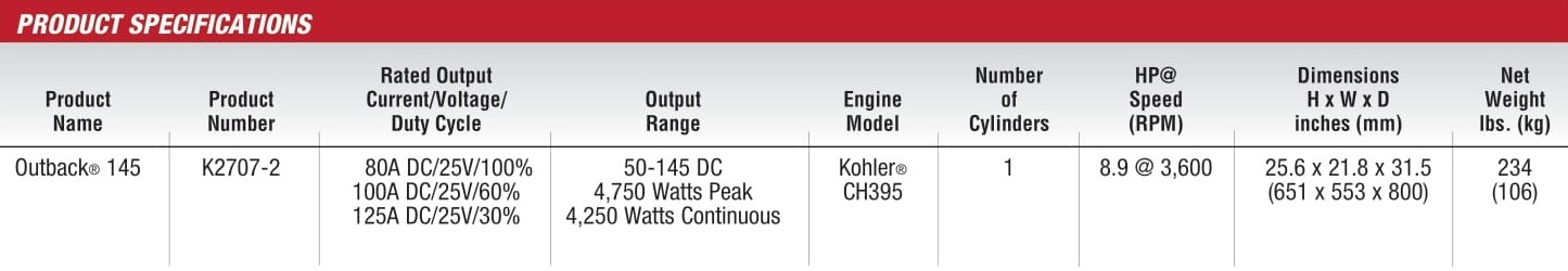 Outback® 145 Product # K2707-2