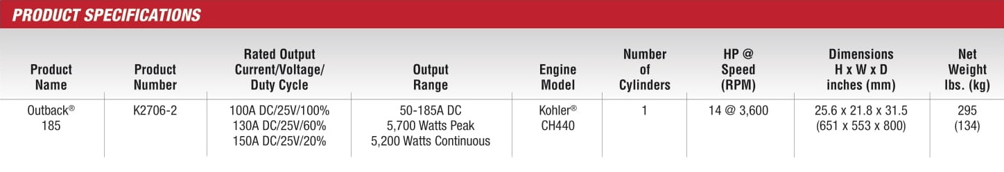 Outback® 185 Product # K2706-2